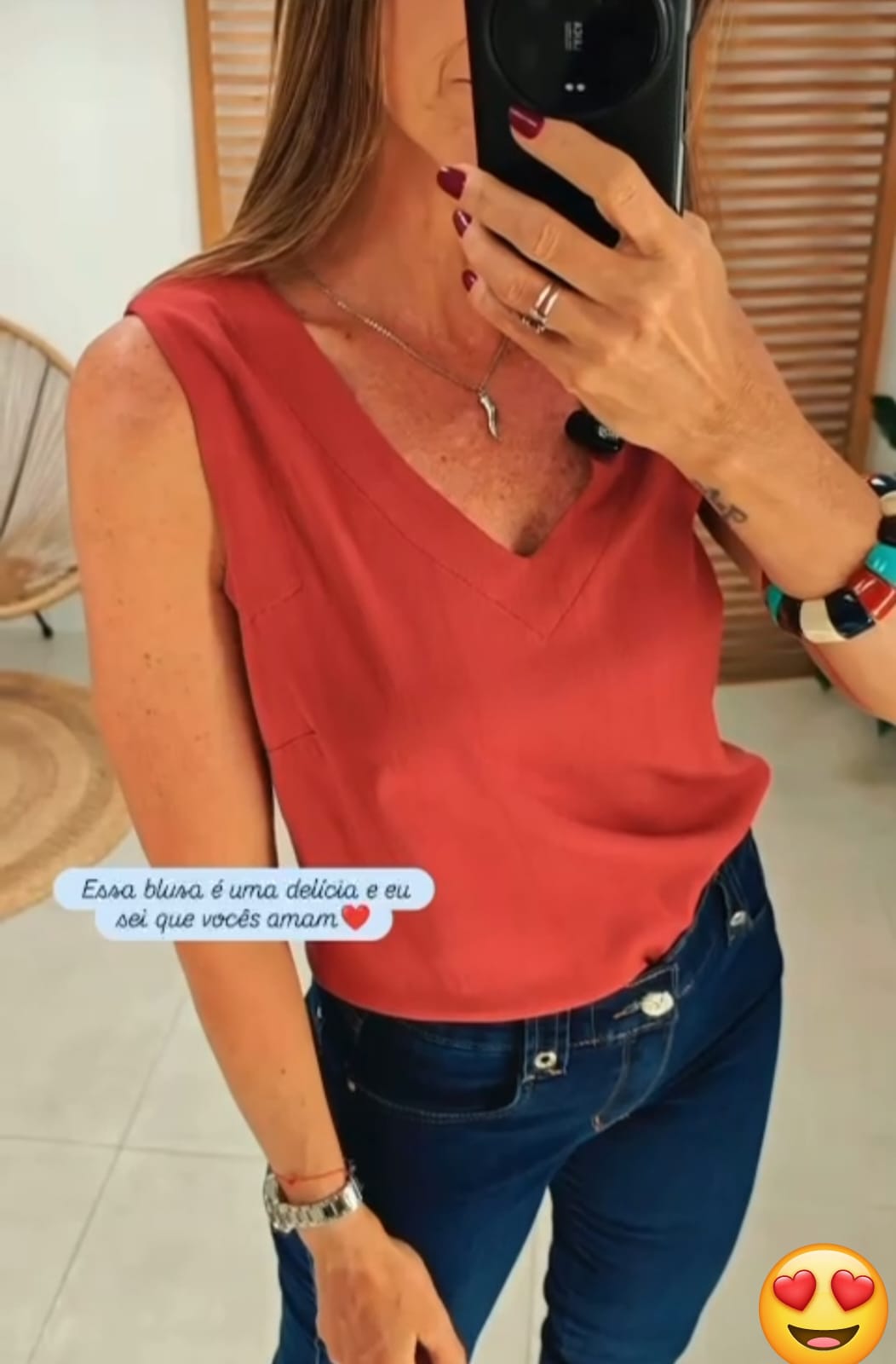 Regata em viscolinho, decote v e alça mais larga.